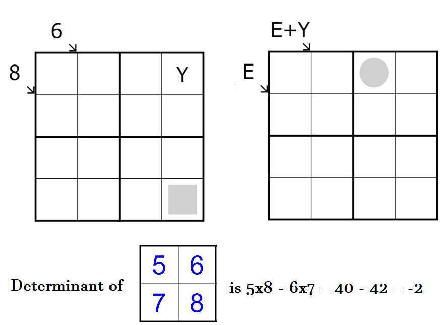 - Unique Determinants: The four 2x2 regions should each be considered a 2x2 matrix. The value of a region is equal to the determinant of this matrix. All four regions have a unique value. The image provides an example of how to calculate the value of a region.
