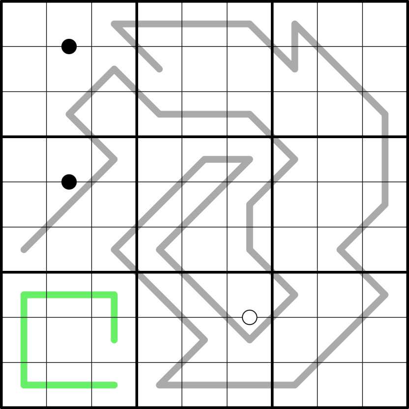 - Digits separated by a black Kropki dot are in a 2:1 ratio.