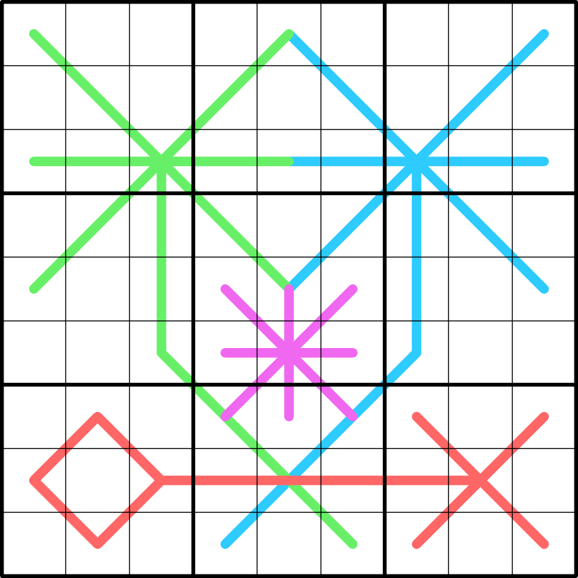 Renban: Digits along a purple line form a set of non-repeating consecutive digits in any order.