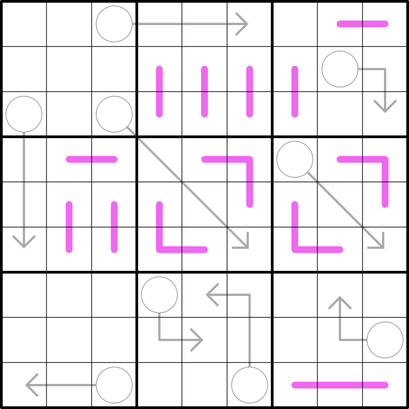 - Normal Sudoku rules: Place the digits 1-9 in each row, column and box, without repeats.