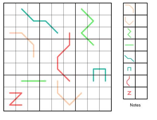 Modular lines: Any set of three sequential cells along a Teal modular line contains one digit from (1,4,7), (2,5,8), and (3,6,9).