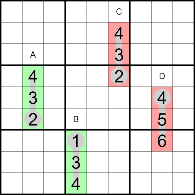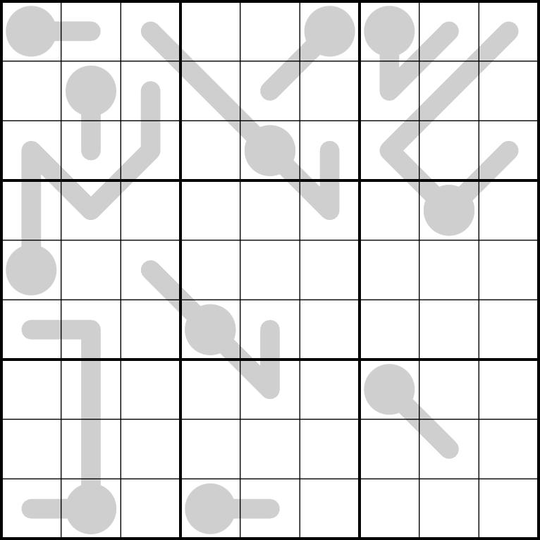 Additionally, cells a knight's move away from a thermo bulb cannot contain any of the digits on that thermo. (see example below)