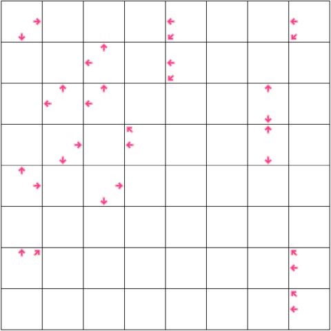 • If a cell with arrows contains the digit D, then the cells D steps away in the indicated direction have a difference of D.