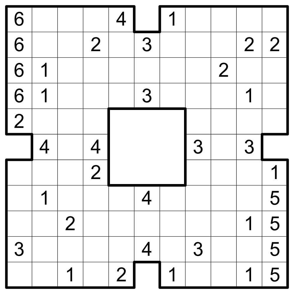 • Divide the grid into regions. A region contains the numbers from 1 to N once each, where N is the largest number in the region.