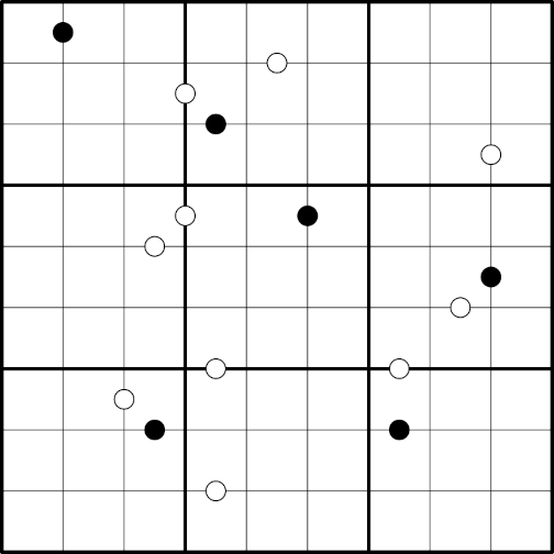 Kropki Pairs: Digits joined by a black dot are in a 2:1 ratio. Digits joined by a white dot are consecutive.