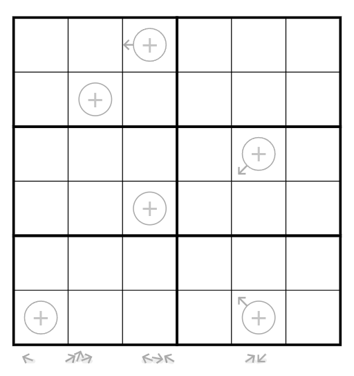 P.S. Ok, this is not a classical "non-linear constraint", because actually an 8 on an arrow puts as much pressure on the digits the arrow points to as a 2 on an arrow; but a 5 on an arrow puts way more pressure. So when you go up the digits, the pressure first increases, then decreases, while in a "classical" non-linear constraint puzzle, when you go up the digits, the pressure just decreases. However, solving this feels a lot like solving the classical ones, so I also think of this as a non-linear constraints puzzle.